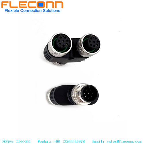 M12 1 Male to 2 Female Y Splitter 8 Pins Connectors Description